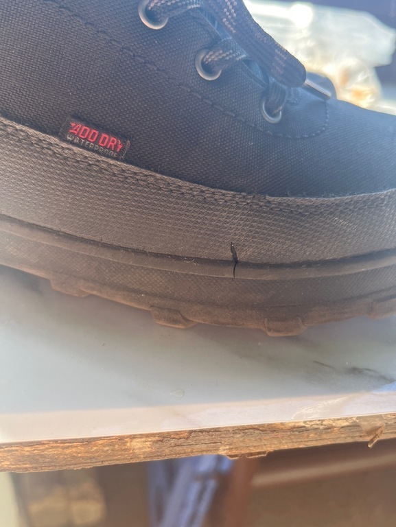 Первый неприятный момент всплыл сразу, при попадании снега сверху на ботинок, он промокает по шву.Очень низкий ресурс. Использовались в основном для поездок по городу на работу и обратно, никаких неординарных нагрузок. Через 3 месяца лопнули оба ботинка в месте сгиба ступни с обоих сторон. Очень мало отходили.