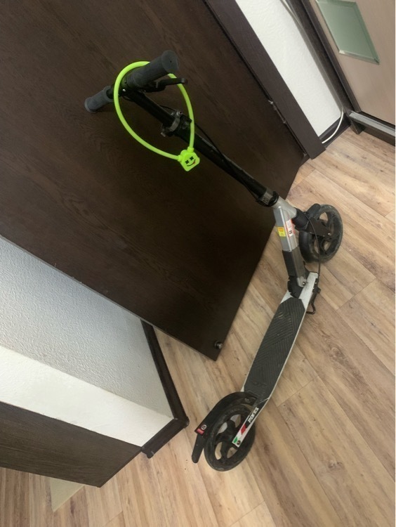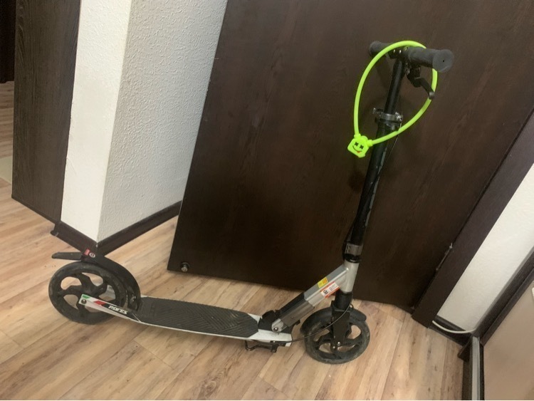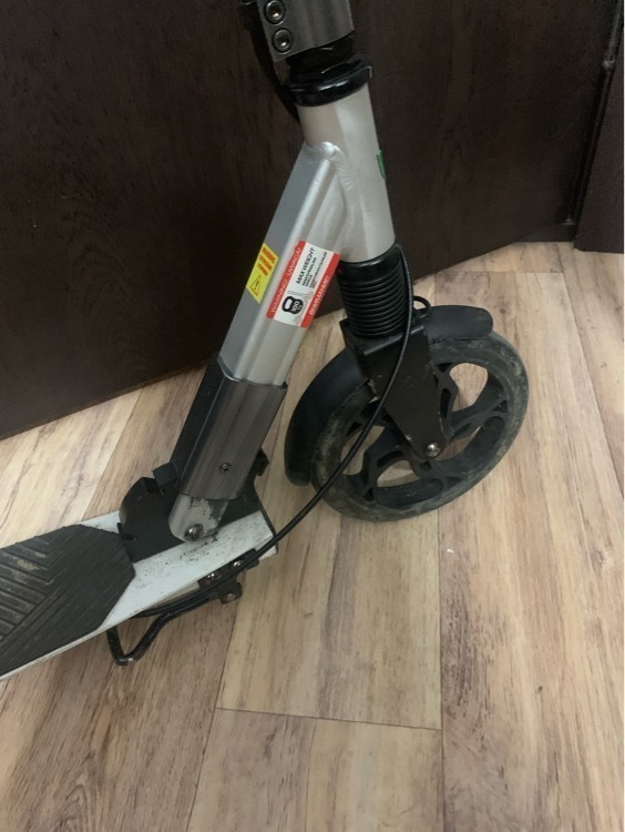 Самокат катится, тормоза работают, но спустя две недели активной езды и складывания-раскладывания потерялась запчасть на самокате.