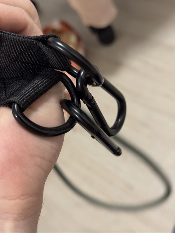 Имеет свои отстегивающиеся карабины, которые позволяют варьировать его использование с другими аксессуарами - например, с крепления и для ног. Качественно выполнен.