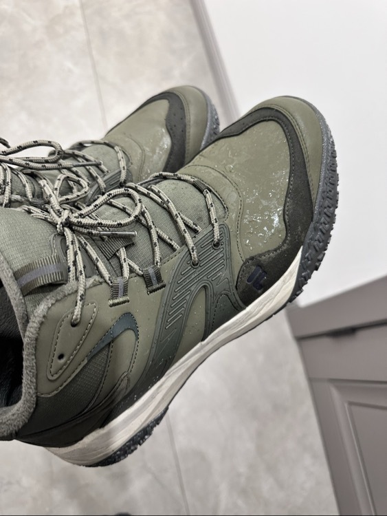 Просто ужас! У меня много разной обуви Filа , но эти не заслуживают даже одной звезды! Промокают через полчаса прогулки в зимний период! Даже после обработки защитным средством, ничего не помогает! Данная обувь только для сухой погоды! Для снега не подходит, для дождя уж тем более!