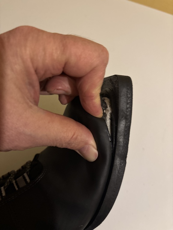 Не выдержали даже один сезон, 02.03.2026 года левый ботинок оторвался от подошвы.