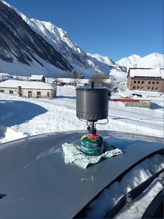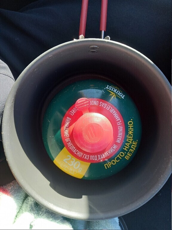 Неопрен, которым обернут котелок, подгорает по низу. Не сильно, но в первый раз можно испугаться. Второй раз уже не плавило.