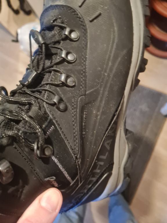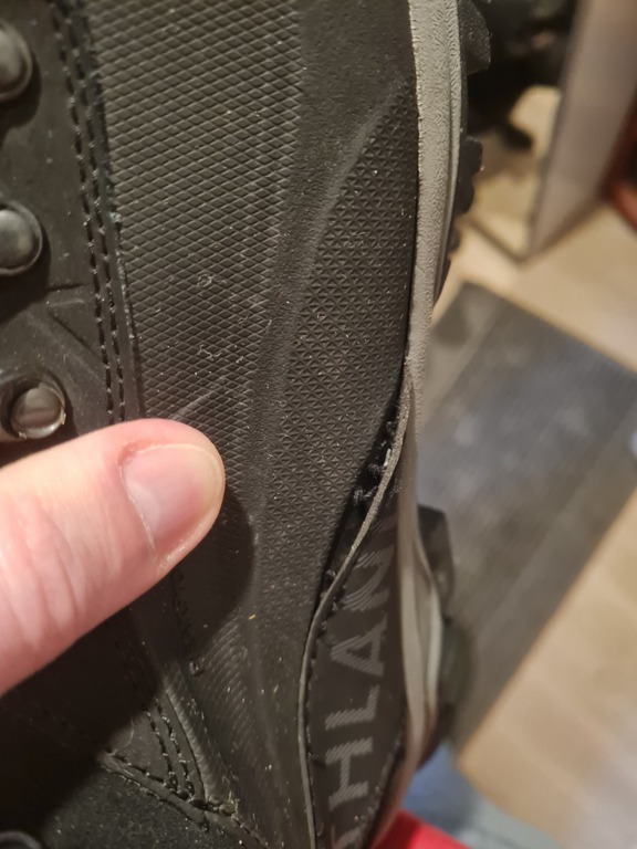 Спустя два месяца носки, разошёлся правый ботинок по швам.