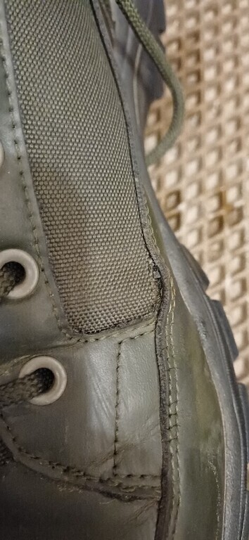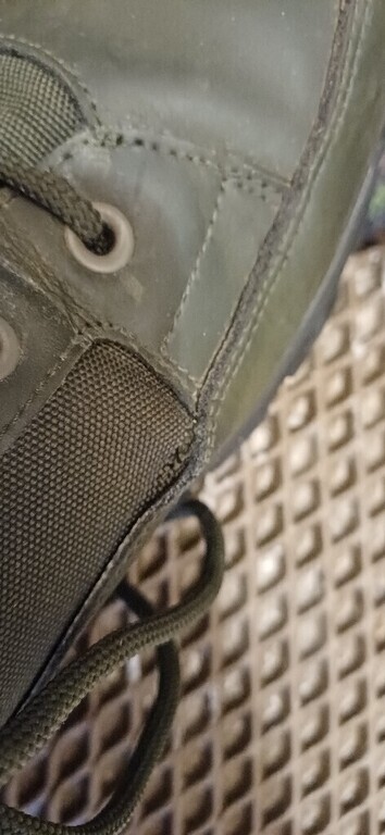 Зима выдалась тёплая, поэтому не надевал почти их. Купил в ноябре, надел в феврале 3 раза. Итог можно увидеть на фото. По бокам пошли трещины, как и у других купивших. В морозы запредельные они не надевались, по лесам, рыбалкам, охотам не использовались. Буквально три раза дошёл до работы.