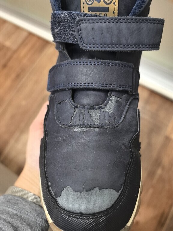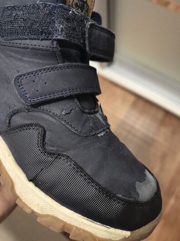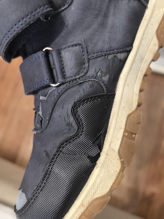 Через несколько дней носки на сгибе отошёл верх. Через месяц отошло и сверху. Промокали. Это ужас, а не обувь. Не хватило даже на сезон, а покупаешь на 2 минимум.
