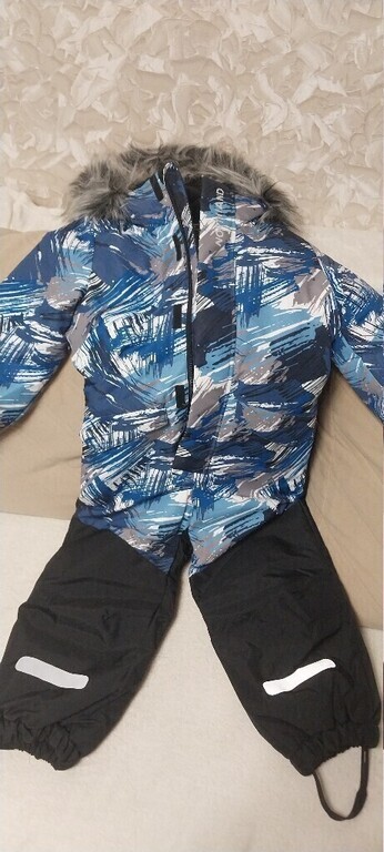 Купили 104-110 на рост 100. Сидит отлично, есть запас. На следующий год думаем, хватит. Качество материала внутри (флис) и снаружи отличное. Дополнительно купили флисовый костюм, теперь любые морозы не страшны. Цвет абстрактный голубой, насыщенный. Светоотражающие элементы и спереди, и сзади. Рекомендую.