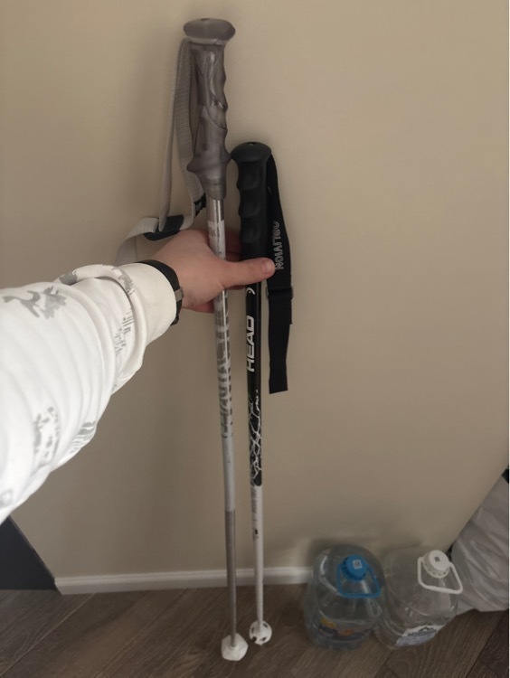 Одна палка согнулась пополам на второй день катания. Попытался выправить об колено - она сломалась пополам. Зря потраченные деньги. Не могу приложить фото сломанной, так как выкинул в мусорку на склоне. И добрый человек мне дал другую, теперь катаюсь так)