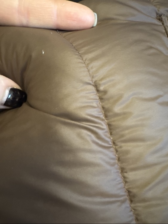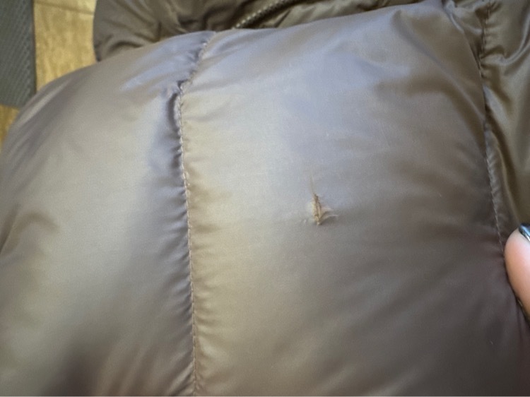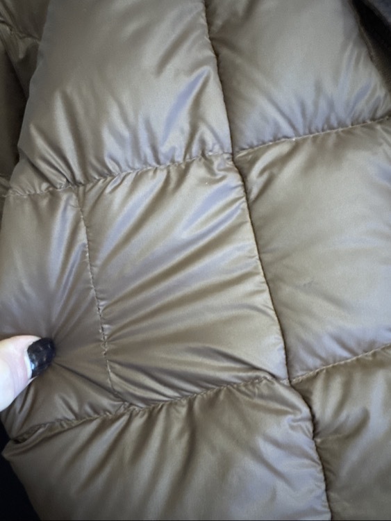Куртка мне очень понравилась и я сразу ее заказала. Сидит отлично, выглядит стильно, но через день после носки у меня появилась рваная полоска в области поясницы. Сходила в ателье, устранили проблему. Но через пару-тройку дней появилась маленькая дырочка в области груди, соответственно, оттуда лезет пух. Затем еще одна в области плеча и еще… Ношу я очень аккуратно, ходила в куртке на выход (по горам не лазила). Ткань ну очень тонкая. Видимо, это и стало причиной этих дырочек.