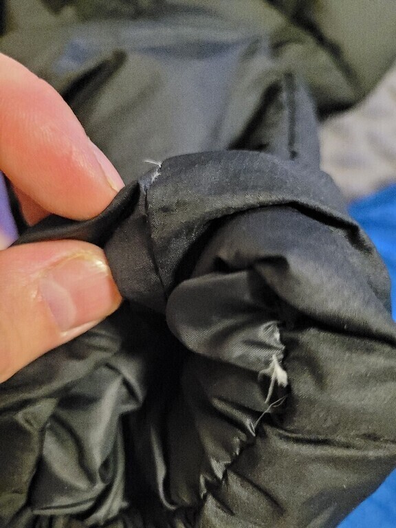 Лезет пух и перья из куртки.