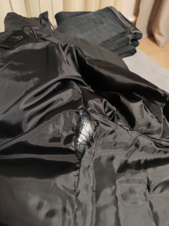 Материала подкладки очень много, поэтому, когда надеваешь его, приходится заправлять в рукавах, наружу вылазит (но это мелочь).