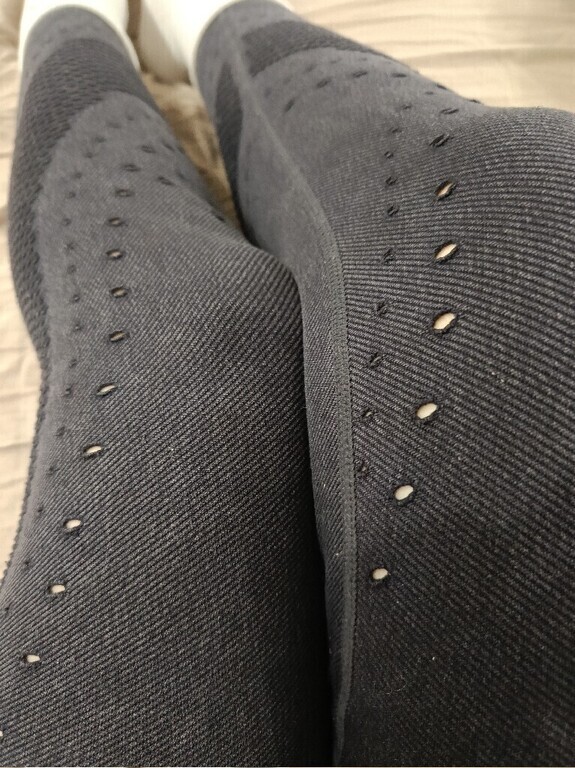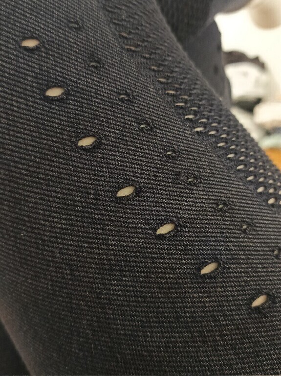 Плотная ткань, телесное бесшовное белье не просвечивает. Отлично тянется, не маркая ткань. Нравится, что очень надежная перфорация - растяжение и даже случайные зацепки ногтями выдерживают. Выглядят бомбически, даже на повседневную носку.
