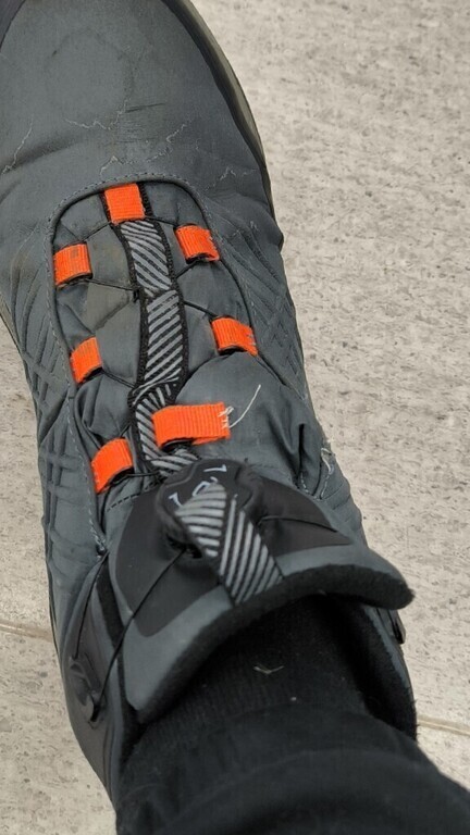Прикольная автошнуровка, эдакое ноу-хау, удивить друзей. Водопрочная, теплая. Нога действительно хорошо сидит в обуви и меньше устает.