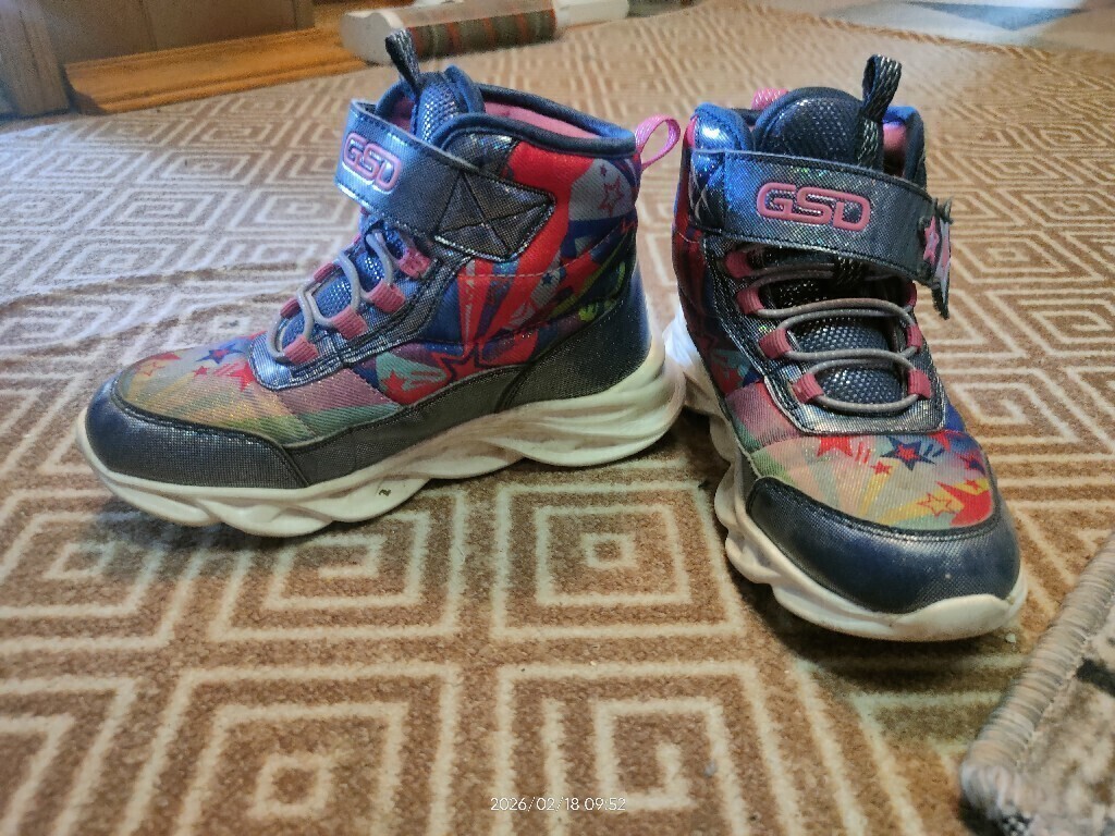 Отличные ботинки, яркие, лампочки светятся, подошва гнется, умеренно не намокают, ходили в них до -3 наверное. На весну/осень.Жаль постирать нельзя, после осени чумазые конечно.