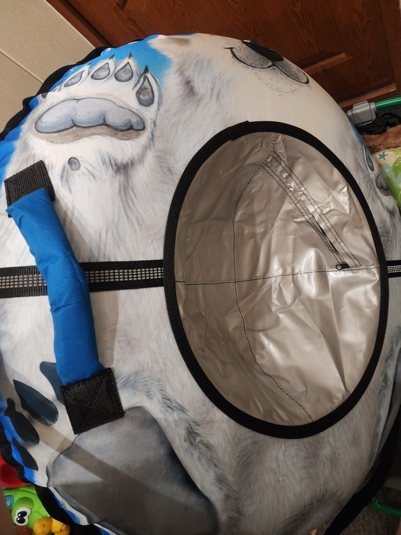 Тюбинг түбі ұзақ қызмет мерзіміне кепілдек беретін және тамаша сырғанауды қамтамасыз ететін аса берік арқау салынған матадан жасалған. Материал аязға төзімді және -25 °C дейінгі температураға төтеп береді. Барлық тігістер капрон таспамен күшейтілген.
