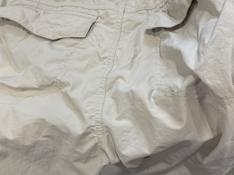В наружных накладных карманах не убраны нитки. Когда кладешь ключи, при ходьбе кольцо цепляется за эти петли, приходится стоять в неудобной позе в попытках отцепить колечко. Дергать рискованно, т.к. нитки синтетические и могут не порваться, а собрать в себя весь шов. Немного портит впечатление за такую цену от такого бренда.