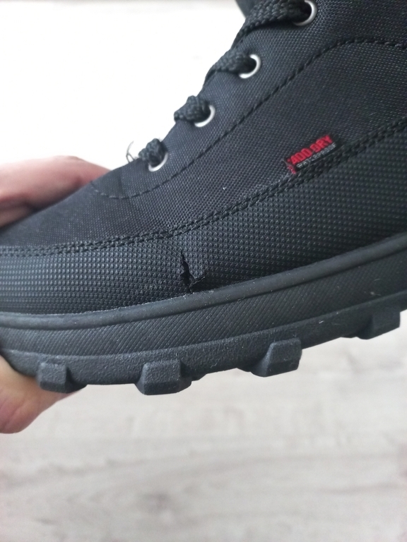 Первый неприятный момент всплыл сразу, при попадании снега сверху на ботинок, он промокает по шву.Очень низкий ресурс. Использовались в основном для поездок по городу на работу и обратно, никаких неординарных нагрузок. Через 3 месяца лопнули оба ботинка в месте сгиба ступни с обоих сторон. Очень мало отходили.