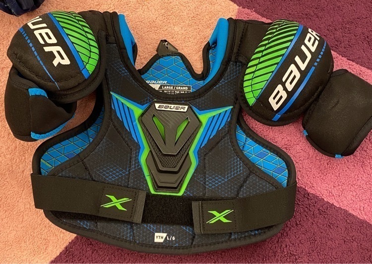 Детский нагрудник Bauer X YTH отлично подойдет для игры на любительском уровне. Модель с удобной конструкцией не стесняет движения и обеспечивает оптимальный уровень защиты. Зауженная к талии посадка обеспечивает превосходное покрытие и защиту без ущерба мобильности и отзывчивости снаряжения. Сегментированная фронтальная панель с центральным щитком из литой пены высокой плотности закрывает грудину. Основа панели, выполненная из пены средней плотности, обеспечивает оптимальный уровень защиты тела игрока. Задняя панель имеет цельную вентилируемую конструкцию из перфорированной пены средней плотности. Защита позвоночника выполнена из пены высокой плотности и усилена пластиковой вкладкой. Элементы из пены средней плотности защищают ключичную область. Плавающие плечевые чаши крепятся к основанию нагрудника с помощью нейлоновых ремней. Низкопрофильная конструкция плечевых чаш из формованного пластика выстлана пеной средней плотности. Регулировочный ремень позволяет игрокам адаптировать цельный элемент защиты бицепса и подобрать для себя идеальную посадку. Подкладка из гидрофобной сетки помогает отводить влагу, сохраняя снаряжение сухим и легким. Мягкий поролоновый воротник не травмирует шею. Фиксация нагрудника осуществляется с помощью липучек