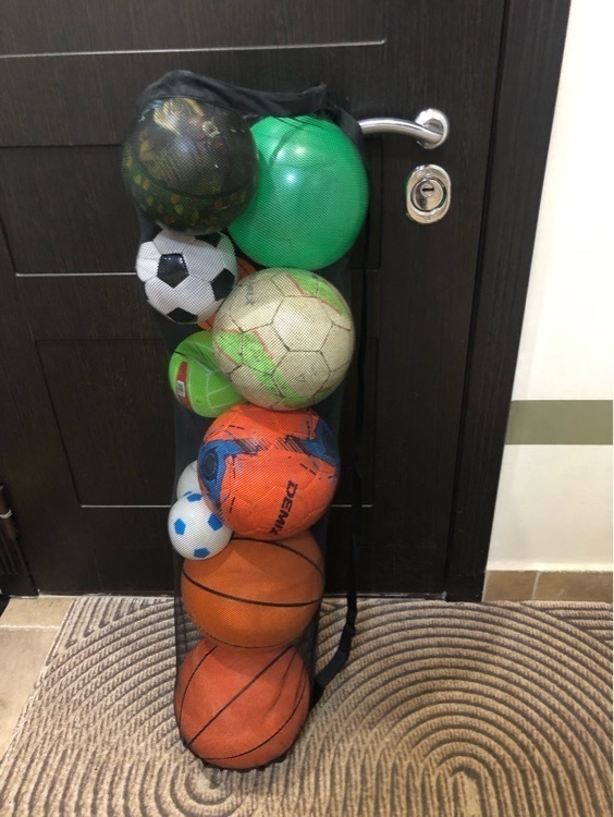 Норм сетка, помещается пять мячей, вроде качественная. Удобно, что мячи складываются в ряд, легко переносить. Посмотрим сколько прослужит