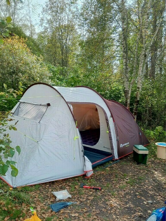 Отличная палатка для семьи из 4-х человек. В тамбуре спокойно можно ходить с ростом 182 см., поставить пару стульев, столик, места много. Спальное место комфортно, вмещает 2 взрослых и 2 ребенка. Для сборки нужны 3 человека минимум, собирается интуитивно понятно, плюс есть картинки и описание сборки на ярлыке в сумке, сборка требует усилий, когда вставляешь дуги в специальные места в полу палатки. Дуги вроде надежные, но при большом усилии как-будто можно и сломать, по крайней мере одну сборку выдержали, дальше посмотрим. За такую цену как сейчас (01.09.2025), вообще подарок. Берите, не пожалеете.