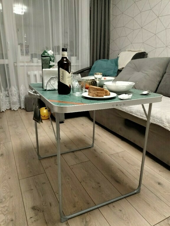 Вообще классный столик, удобный, крепкий. Использую кроме выездов на природу и так ежедневно, как журнальный столик, посидеть перед телевизором и поужинать, можно уроки с детьми сделать. Супер. Не подводил пока уже пол года точно.