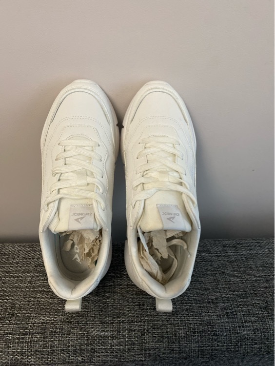 Наконец-то удалось забрать эти кроссовки. Получилось с третьей попытки. Рекомендую, точно не разочаруетесь. Очень удобные белые, с прорезями на подошве. Уже говорила, что ношу демикс. У меня их несколько пар, и я ни разу не жалела о покупке.