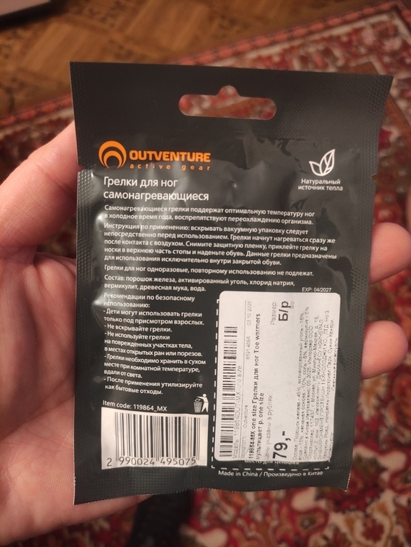 При наклеивании на носок сразу ощущается тепло, но вот в ботинке для беговых лыж согревание не чувствовалось, пальцы замерзали.