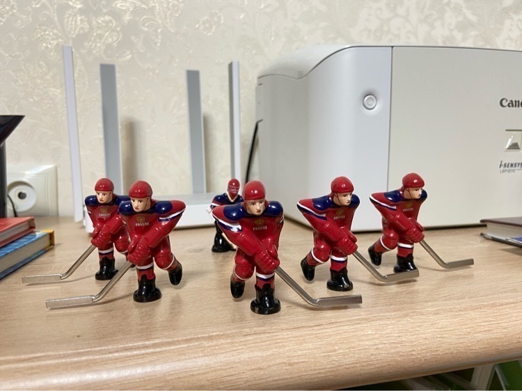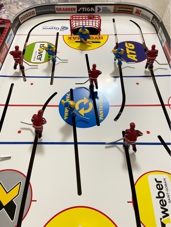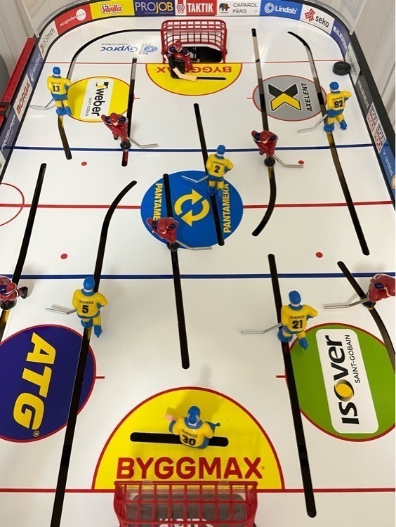 Не советую покупать. 1). У игроков клюшки расположены в разные стороны, не как у игроков, которые идут в комплекте с хоккеем. 2). Когда играл, обратил внимание, что Шведскими игроками легче играть. И действительно, Российские фигурки на 2 грамма тяжелее. Да, они очень красивые, но не практичные. Вы сами почувствуете разницу.