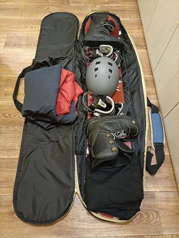 Единственное, размер доски 158, чехол 168. Брал с запасом, если брать меньше то боты будет не запихнуть, не говоря уже о шлеме.