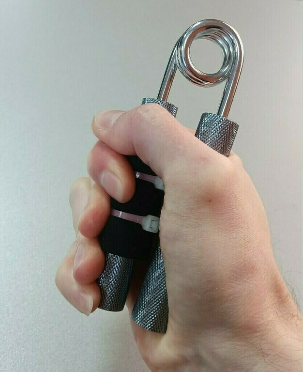 Хороший эспандер начального уровня для новичков. Надо немного наловчиться с положением руки и потом он будет выполнять свою функцию в полной мере. В перчатках заниматься сподручнее, так как не натирают руки в них.