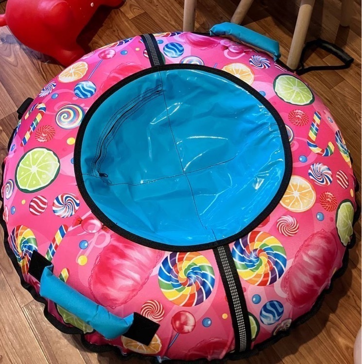 Тюбинг оснащен удобными и безопасными анатомическими ручками и молнией для быстрого доступа к камере. Закрытая сердцевина исключает попадание снега внутрь.