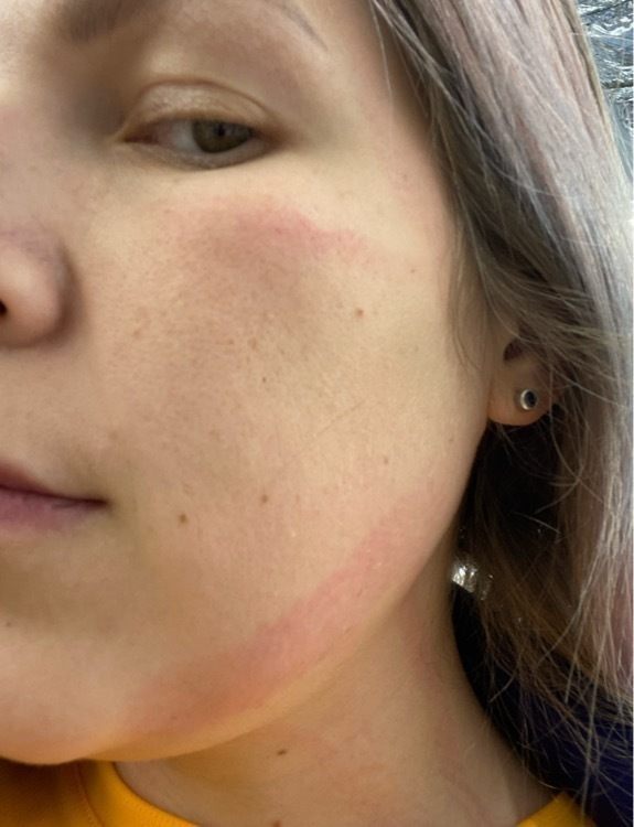Сильная аллергическая реакция. Следы красные от тейпа на лице (не проходят уже с момента написания отзыва 14 часов, сильный отек век.
