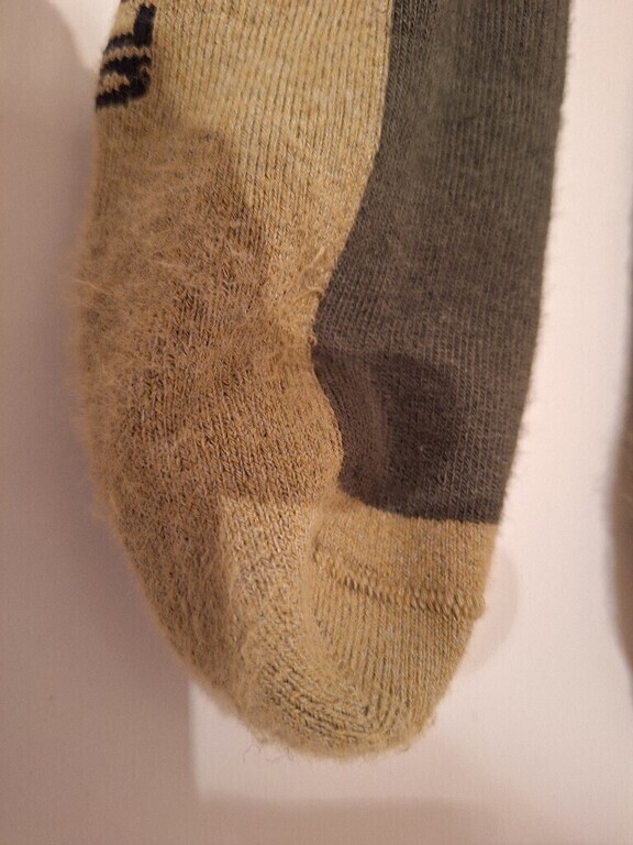 В районе пяток катышками пошли,кое где нитки вылезли