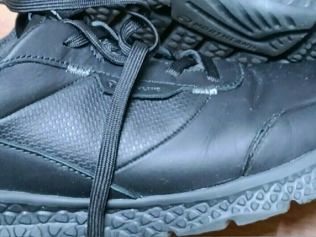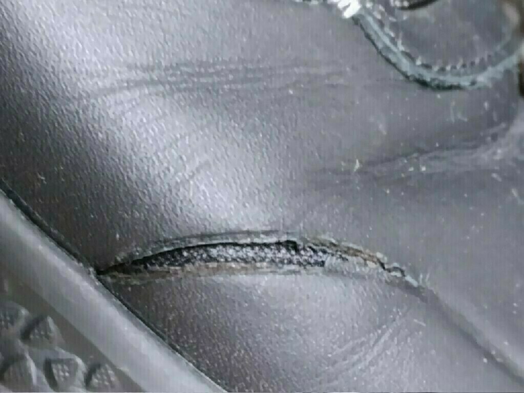 Треснула кожа, если это, конечно, кожа, сверху на рисунке через 4 месяца носки, названия со стельки стёрлись на второй день носки, шнурки неудобные, всё время развязываются.