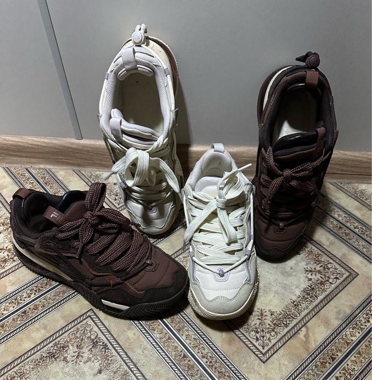 На кроссовках есть небольшое черное пятнышко, а шнурки были грязные. В итоге я взяла обувь, надеюсь, что смогу это отстирать. Подошва довольно жесткая, в таких точно не получится быстро бегать. И мне кажется, что они могут натирать, но это только предположение.