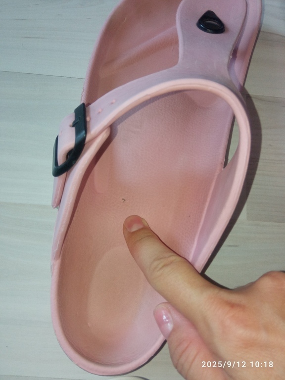 Подошва не надёжная, проколола колючкой, соответственно повредила ногу, стопу, на обуви остался прокол (фото прилагаю), после мытья на месте стопы остаются жёлтые пятна от пальцев, что не совсем красиво выглядит, и эти пятна не оттираются ничем.
