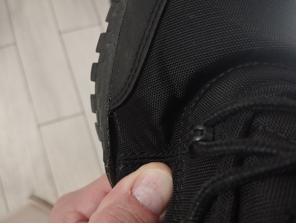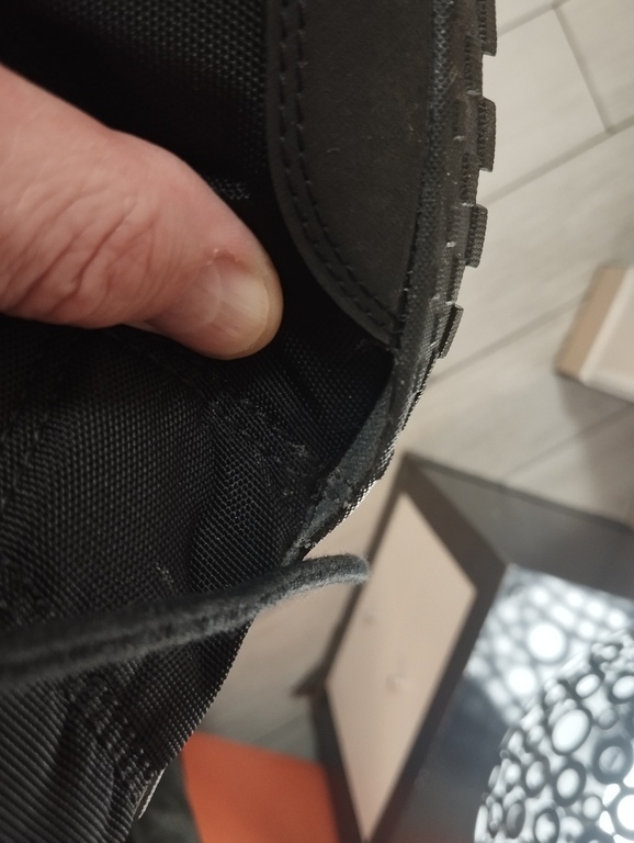 Плохо проклеена подошва. Отошли края по всему периметру, особенно на сгибах.
