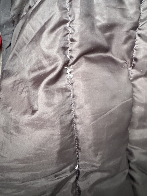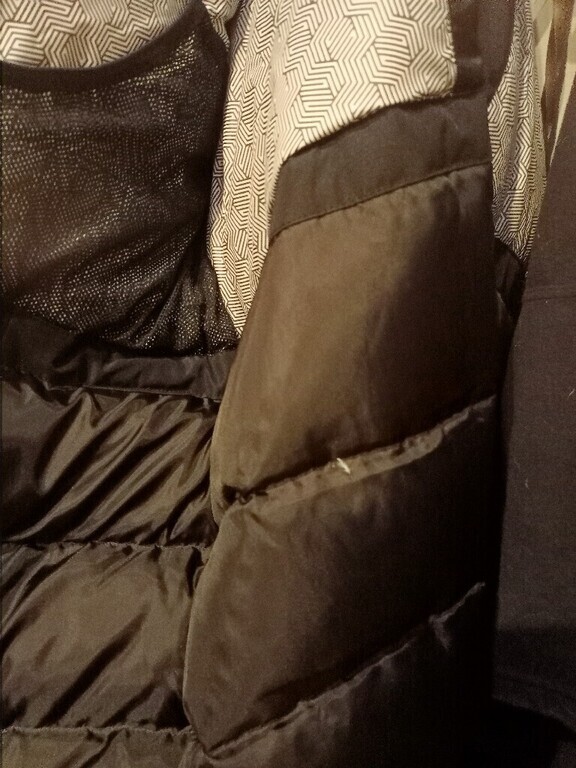 Пух лезет из всех швов, вся одежда в пуху, рукава холодные.