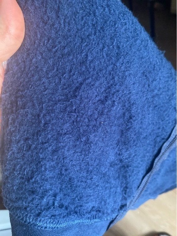 Взяли модель, схожую с той, что брали 4 года назад (очень понравилась, носили 2 ребёнка - не сносили). Первое впечатление от новой толстовки было хорошее: удобная, приятная к телу, сидит хорошо, есть капюшон, кармашки.Потом сын её снял, и оказался весь в волосках: руки, футболка - всё покрылось синей "шерстью". Я стала полоскать кофту в раковине под струёй воды в надежде, что выпавшая "шерсть" смоется, но меньше её не становится((( Разочарована.