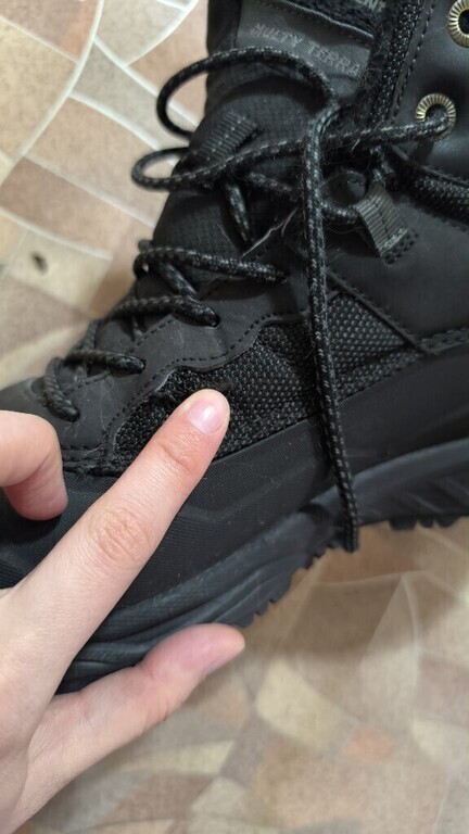 Неудобно шнуровать, вместо крючков вверху как обычно, просто отверстия. И самое неприятное, правый ботинок через две недели бережного использования стал ужасно скрипеть где-то внутри подошвы и скрип усиливается. Теперь только выбросить их, по улице ходить невозможно.