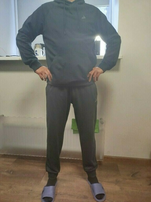 В худи предусмотрен вместительный карман-кенгуру, который делает ее практичнее и функциональнее, а в брюках есть 2 боковых кармана.