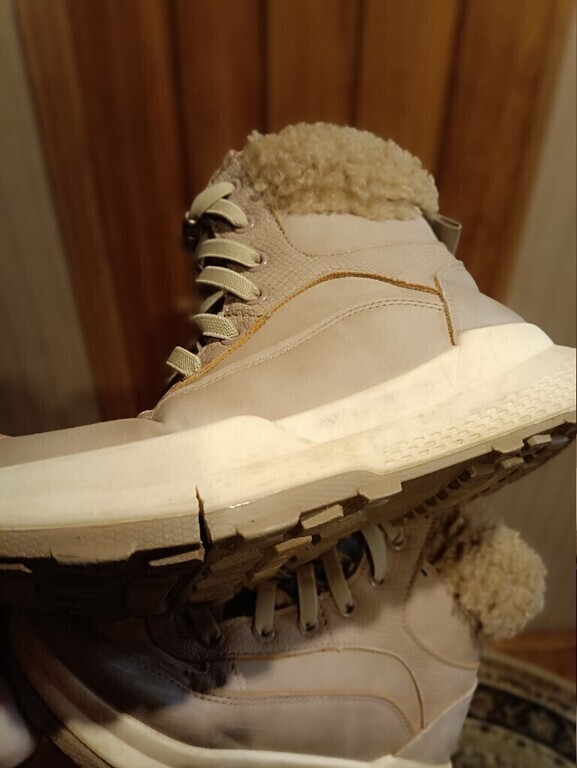 Очень жаль, когда покупала, отзывов плохих не было, пишут уже после носки и так далее. Купила, просто чтобы были, прошлой зимой с декабря 2024 по февраль 2025 надела пару раз. Так как это не основная обувь, а просто дополнение. В начале декабря 2025 у нас похолодало прилично. Так как по большей части пришлось больше надевать спортивную одежду, то достала ботинки. Как-то смотрела в приложении что-то другое и наткнулась на них, и смотрю, появились отзывы и оценка не очень. Решила почитать и прочла проблему многих, а точнее, почти у всех. Решила посмотреть свои, но так как не носила почти, то пока все было … Показать больше