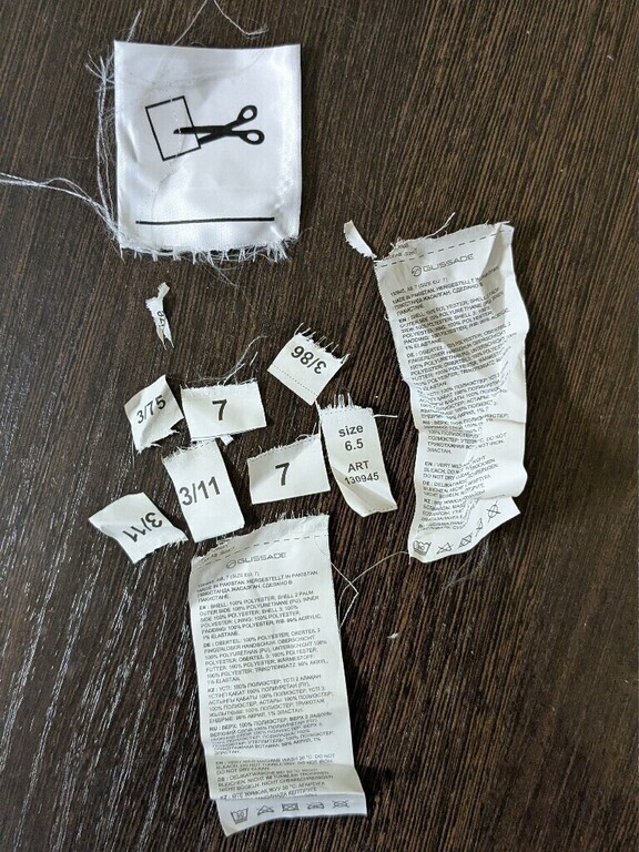 Перчатки красивые, но холодные, особенно на ветру. Ниже -10 мерзнут концы пальцев, а если снять даже ненадолго, обратно уже не согреешься, разве только в карманах.Для производителя отдельный котел в аду за вшитую в подкладку библиотеку. 10 (десять) ярлычков на пару, большинство из жесткого материала. Их нельзя просто срезать, будут царапать кожу. У меня большой опыт извлечения этой дряни из швов буквально по волокнам, но никогда еще это не было так трудно из-за мелких стежков шва и толстенной стопки вшитого.