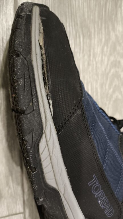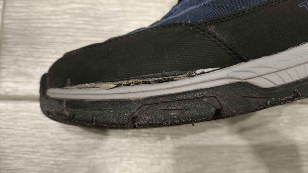 Полуботинки довольно теплые. Проходил одну зиму. Очень радовался. Ноге комфортно. Однако еще не началась толком вторая зима, разошелся клеевой шов и отклеилась подошва (смотрите фото).