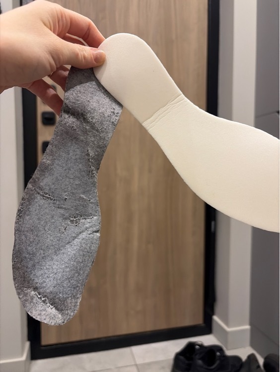 После одной носки на физкультуру расклеились обе стельки. Стелька это просто наклеенное подобие тонкой типа войлочной ткани.