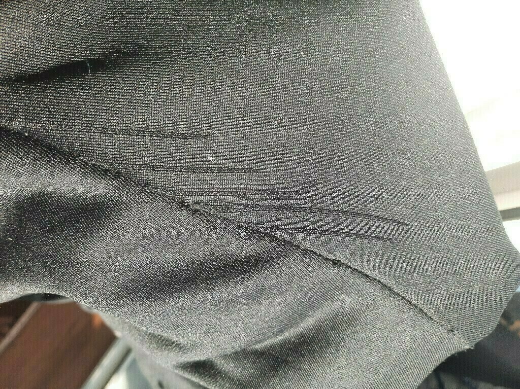 В районе пятой точки спустя неделю начал расходится материал полосами одна за другой. Видимо, брак попался. Хорошо, что поменяли по гарантии.