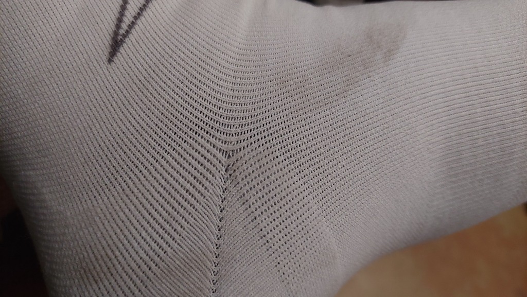 Несоответствие размера. У меня нога 42 размера, взял носки 39-42. Натягиваю, пятка уезжает на щиколотку, опускаю пятку - носок болтается у пальцев. Конечно, можно потянуть там и сям, в итоге распределить носок по стопе как следует. Но это не дело. Итог: берём на размер меньше. У кого размер ноги ближе к началу диапазона, думаю, можно и на 2 размера меньше. Ослабленное место у пятки (на фото). Может, нормально, а может, именно там спустя время разойдутся. Но я лично стараюсь брать вещи без таких особенностей. Резинка, может, малость туговата. По крайней мере, есть носки, у которых выраженной резинки по верху вообще нет - всё … Показать больше