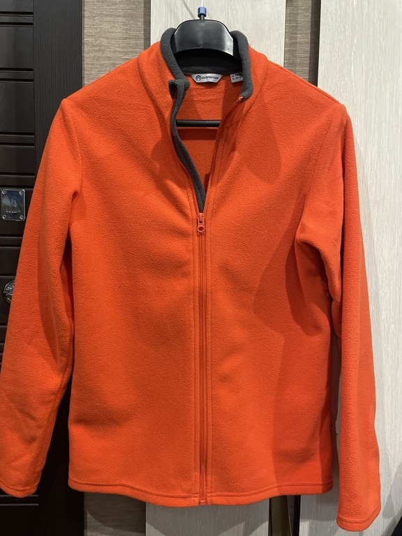 Хороший флисовый джемпер, взяли штаны - получился костюм, на рост 140 подошел размер 146-152.