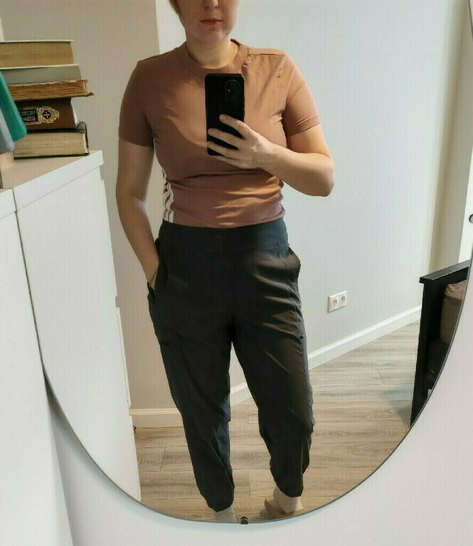 В целом брюки хороши, но талия ничем не фиксируется, слишком свободно прилегают. На мой рост 1,64 длина отличная.