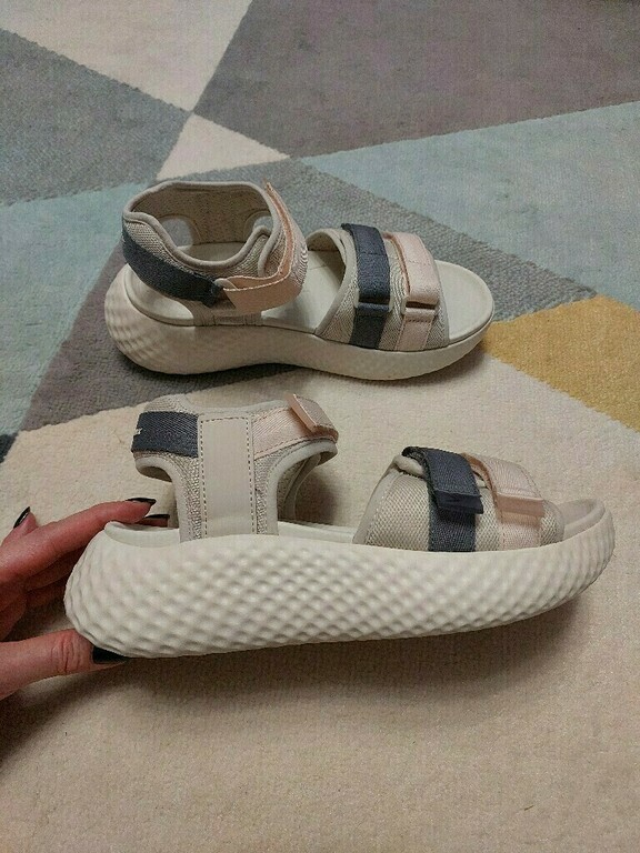 Для меня они как открытые кроссовки. Главное преимущество - липучки, с моим низким подъемом это выход из положения. С размером не ошиблась. Ходить мягко, слегка пружинят. Пока только по квартире ходила, жду лето.