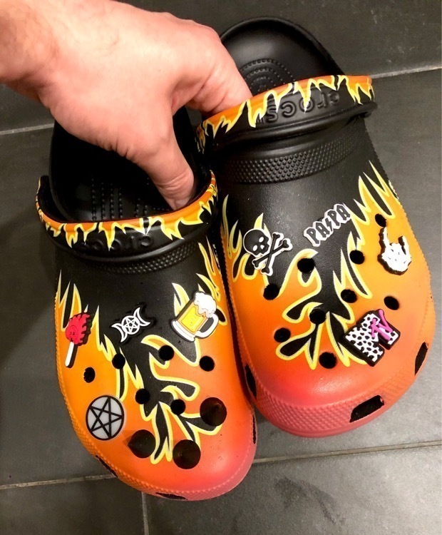 Клоги Crocs, украшенные уникальным принтом, — сочетание запоминающегося дизайна и фирменного комфорта от бренда. Идеально для жаркого лета!